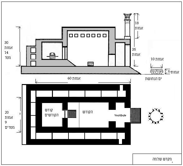 - המידות הפנימיות של הבית הם 60X20X30 אמה. מבנה מרשים באיכות החומרים והעיצוב אבל קטן מימדים אף ביחס להיכלות עתיקים (ובוודאי ביחס למבנים פשוטים היום). יש כאן אמירה: ה' משרה שכינתו על השפל והצנוע.