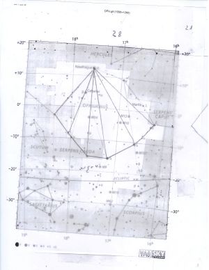 22.(שם של פרח).לפי מפה באטלס אוקספורד בה יש כוכבים מפוזרים בצורת משולש שקדקודו צפונה כלפי הקו שאפשר לחושבו כגבעול.