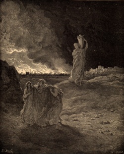 - רבי יהודה אומר הכריזו בסדום כל מי שהוא מחזיק בפת לחם לעני ואביון ישרף באש. פלוטית, בתו של לוט, היתה נשואה לאחד מגדולי סדום. ראתה עני אחד מדוקר ברחוב העיר, ועגמה עליה נפשה. מה היתה עושה ? בכל יום, כשהיתה יוצאה לשאוב מים, היתה נותנת בכד שלה מכל מה שבביתה ומאכלת לאותו עני. אמרו: מאין חי העני הזה ? וכשידעו בדבר, הוציאוה לישרף. אמרה: רבון העולמים עשה משפטי ודיני, ועלתה צעקתה לפני כסא הכבוד. באותה שעה אמר הקב"ה :ארדה נא [ואראה] אם צעקת הנערה הזאת עשו אנשי סדום אהפוך יסודותיה למעלה הכצעקתם אינו אומר אלא הכצעקתה:"